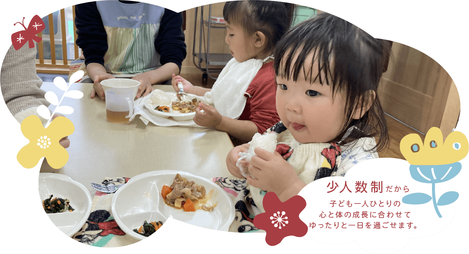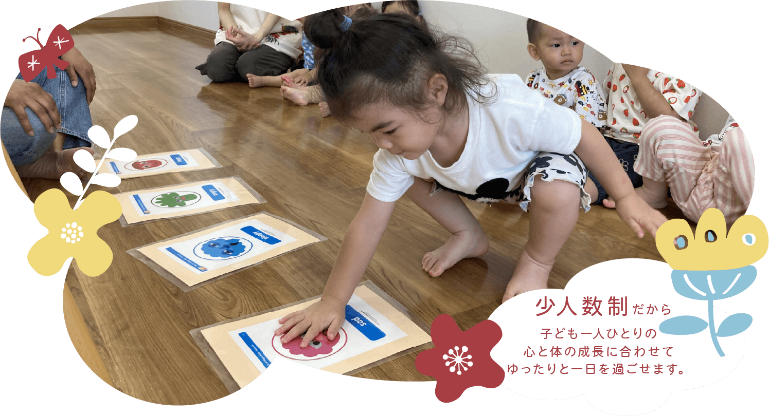 年齢に応じた成長支援プログラムや遊びを通じて、安心・安全な保育の中で豊かな学びを促します。